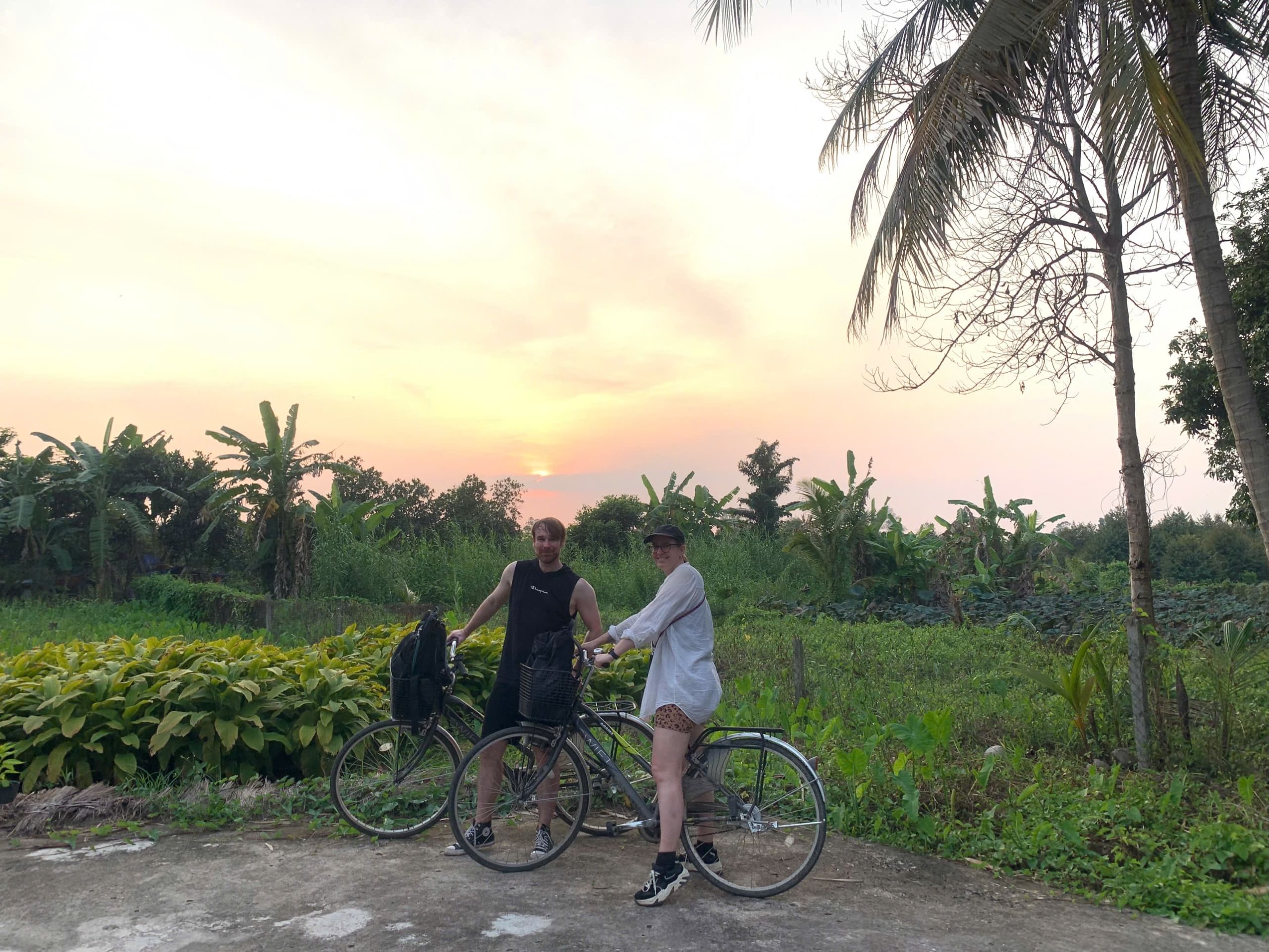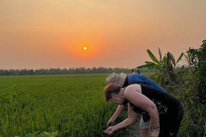 We’ll embark on a scenic cycling journey through tranquil villages, immersing ourselves in the daily life of local people. Along the way, you’ll pass lush fruit gardens and vast rice fields, experiencing the serene beauty of the rural countryside.