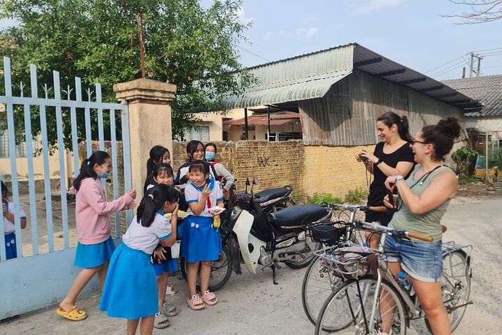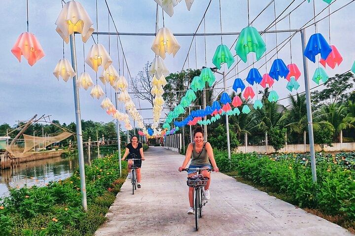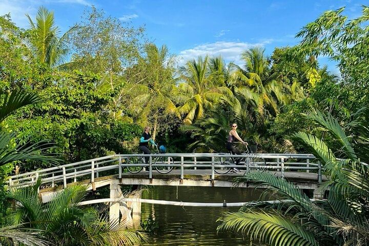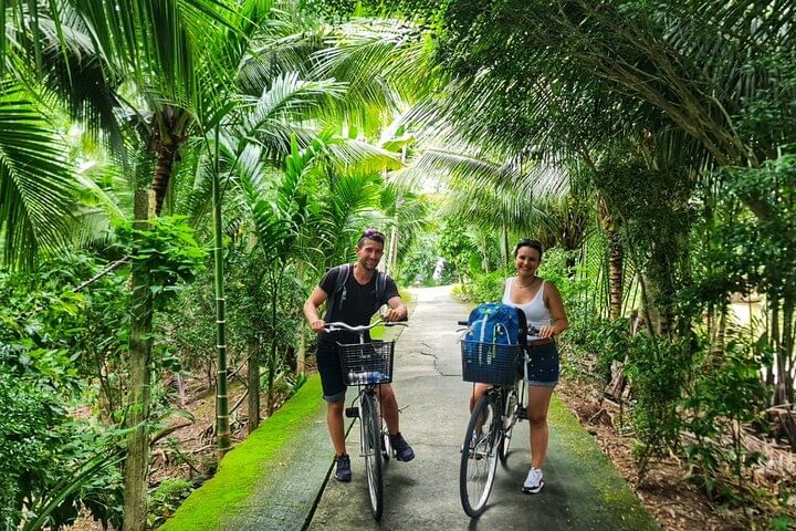 Local Fruits Discovery: Bike through riverside fruit gardens where golden mangoes, spiky jackfruits, star apples, and pineapples ‘tempt’ you with their seasonal fragrance and flavor. Your guide will share how farmers grow and take care of these tasty fruits.