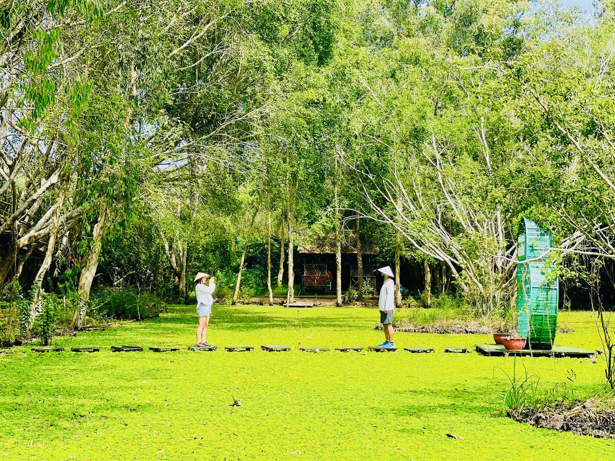 Mua Xuan Nature Reserve: Cruise gently along waterways, covered by water hyacinth and water lettuce, creating a magical and tranquil wetland escape. Next, discover colorful plants, rare tropical birds such as herons, kingfishers, coucals, and swamphens. Then, climb the viewing tower for breathtaking views of the entire reserve and take a peaceful 30-minute forest walk to refresh your body and mind. Every step reveals a living, breathing ecosystem full of color, movement, and wonder.